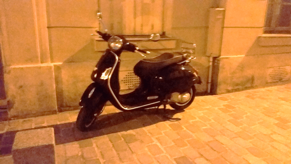 Et puis, il passe devant un scooter rutilant. Beau. Neuf.