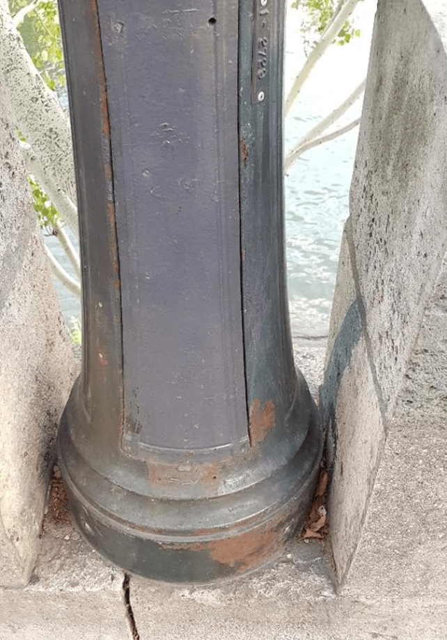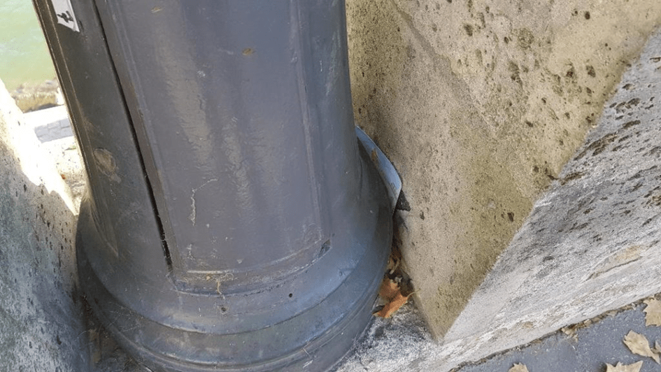 Et j’ai vu ce que vous voyez : elle avait glissé comme un papier, ou un dessin dans l’interstice de la base du lampadaire et du muret.