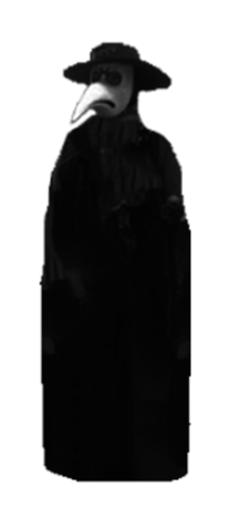 C’est le symbole de la Peste. Ils étaient médecins de second ordre, payés spécialement par les villes où l’épidémie sévissait. Ils portaient un masque en forme de long bec blanc, rempli d’herbes aromatiques censées protéger de l’air putride selon la théorie des miasmes de l’époque (Wikipédia).